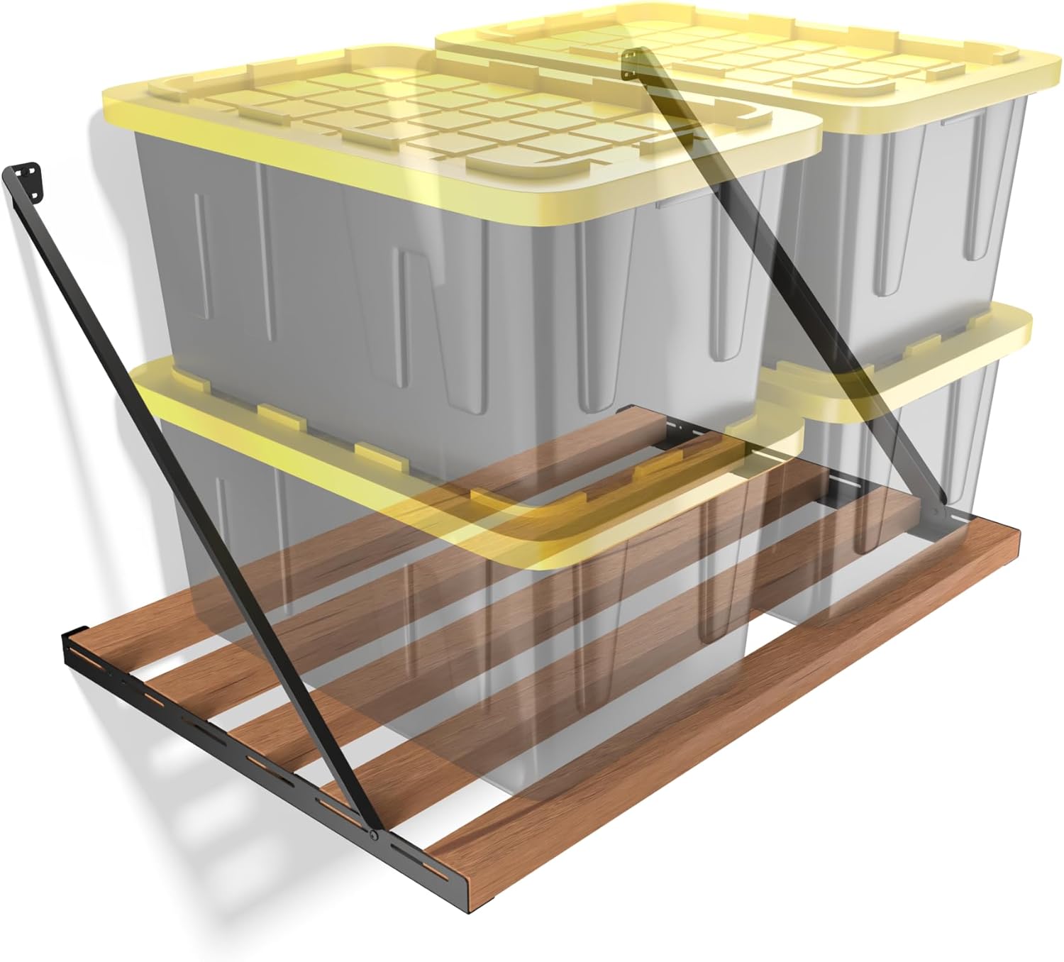 This DIY shelving system is a great option to utilize unused wall space and get your garage organized. Brackets crafted from premium steel, and manufactured right here in the USA. A nice Saturday or Sunday project, just head down to Home Depot or Lowes for a 2x4, cut it to the size mentioned in the instructions that come with in the box, and then put it up on the wall. You'll know it's sturdy because you built it!